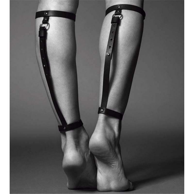 Uprzęże na łydki, skomponowane ze skóropodobnych pasków marki Bijoux Indiscrets. Artykuł pochodzi z kolekcji MAZE na sezon jesień / zima 2017.