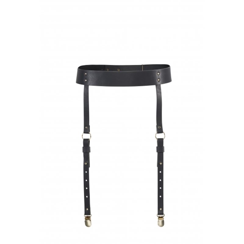 Skórpodobny pas do pończoch z najnowszej kolekcji Bijoux Indiscrets - MAZE. Długość pasków, jak i szerokość w pasie można regulować.