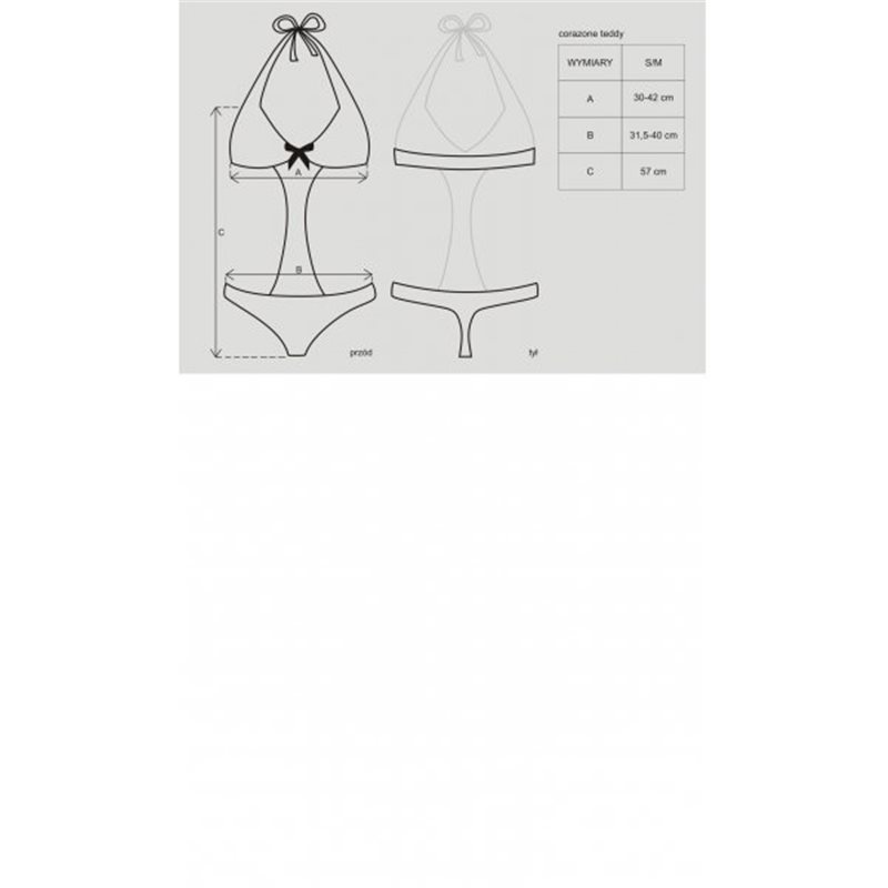 Fantastyczne czarno-różowe body wiązane na szyi. Między miseczkami słodka kokardka i błyszcząca zawieszka w kształcie serduszka. Elastyczny materiał sprawia, że bielizna doskonale dopasowuje się do ciała. Całość zdobiona miłosnym wzorem serc.