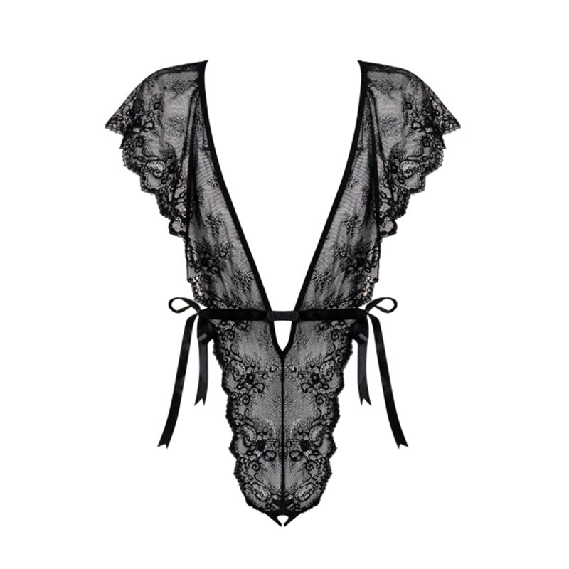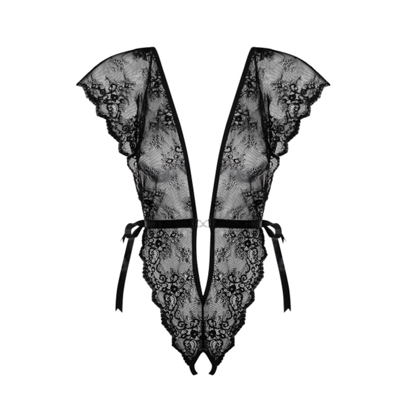 Zaskoczyłaś go już nie raz, ale chcesz znowu zobaczyć w jego oczach iskierki zachwytu? Tutaj czeka na Ciebie coś totalnie wyjątkowego! Body o niepowtarzalnym kroju osłoni Twoje ciało delikatną koronką odkrywając jednocześnie kusząco dużo. Zawiąż satynowe paseczki i czaruj zupełnie nowym urokiem!
