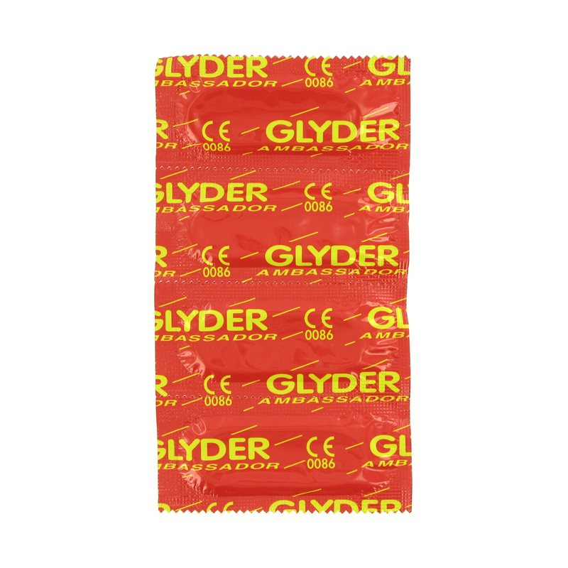 Durex Glyder Ambassador 144 sztuki to zestaw jest najbardziej popularnym modelem koncernu Reckit Benckiser produkowany z przeznaczeniem na Europę zachodnią Jest to klasyczna prezerwatywa stworzona z naturalnego hypoalergicznego lateksu testowana elektronicznie.