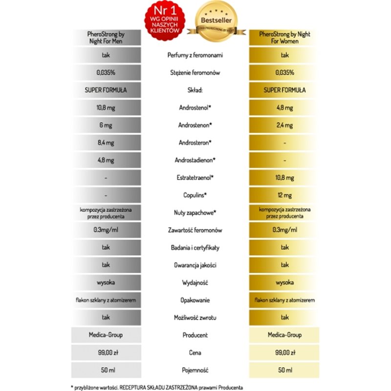 Specjalnie dobrana kompozycja składników zapachowych i feromonów zapewniająca efekt synergii i niesamowite działanie już od pierwszego użycia.