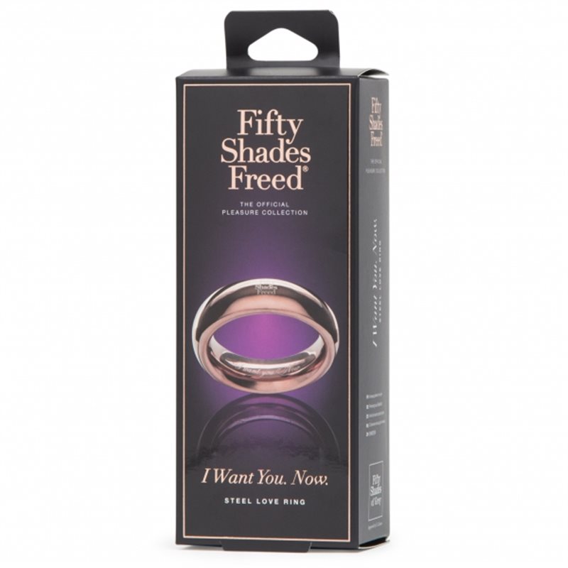 "I Want You. Now." to pierścień erekcyjny z oficjalnej kolekcji Fifty Shades Freed. Wyjątkowy design imituje obrączkę ślubną. Mężczyzna przekłada wiotkiego penisa przez pierścień, który podczas osiągnięcia erekcji blokuje odpływ krwi i wzmacnia wzwód oraz sprawia, że stosunek jest dłuższy i przyjemniejszy.
