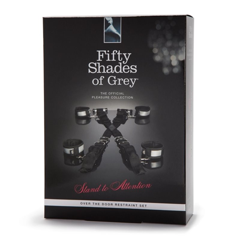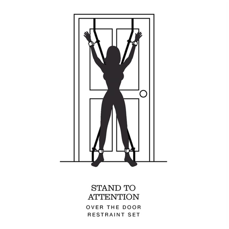 Stand to Attention to wyjątkowy zestaw do krępowania rąk i nóg z oficjalnej kolekcji Fifty Shades of Grey, stworzonej we współpracy z E. L. James, autorką bestsellerowej powieści o tym samym tytule. Zestaw składa się z czterech kajdanek połączonych ze sobą taśmami z blokadami przekładanymi przez drzwi. Zestaw można przełożyć przez każde drzwi o wysokości do 2 m. Do zestawu dołączona została maska na oczy oraz zawieszka na klamkę od drzwi w prezencie.