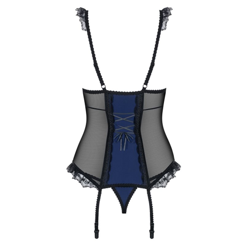 - seksowne połączenie granatowej tkaniny i prześwitującej siateczki