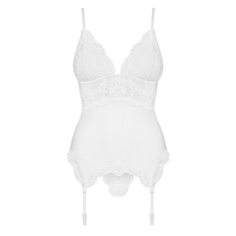 Gorąca inspiracja na bardzo udany wieczór we dwoje? Proszę bardzo! Biała koronka z przyciągającym wzrok motywem, uwodzicielski krój, cudowne doznania i… ogromna dawka miłości! Wszystko to znajdziesz w jednym, magicznym pudełeczku. Zabierz je do siebie i oczaruj swojego mężczyznę!