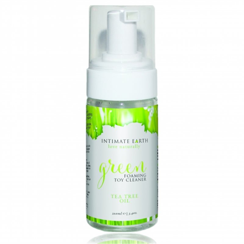 Green marki Intimate Earth to wysokiej jakości środek czyszczący, przeznaczony do codziennej higieny zabawek erotycznych. Zawiera naturalne składniki czyszczące, takie jak olejek drzewa herbacianego, olejek lawendowy, a także korę guavy - oznaczony znakiem towarowym składnik antybakteryjny. Nie zawiera triclosanu ani alkoholu.