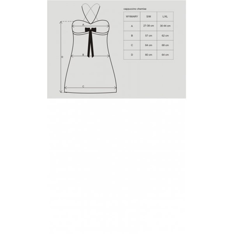 Szykowna haleczka w tonacjach beżu z dodatkiem czekoladowego brązu. Staniczek wykonany jest z elastycznej dzianiny natomiast spód z delikatnego jak mgiełka szyfonu. Połączenie obu części zostało podkreślone brązową satynową wstążką z efektowną kokardą. Regulowane szeleczki łączą się ze sobą z przodu tworząc wyjątkowo elegancki dekolt. W komplecie stringi..