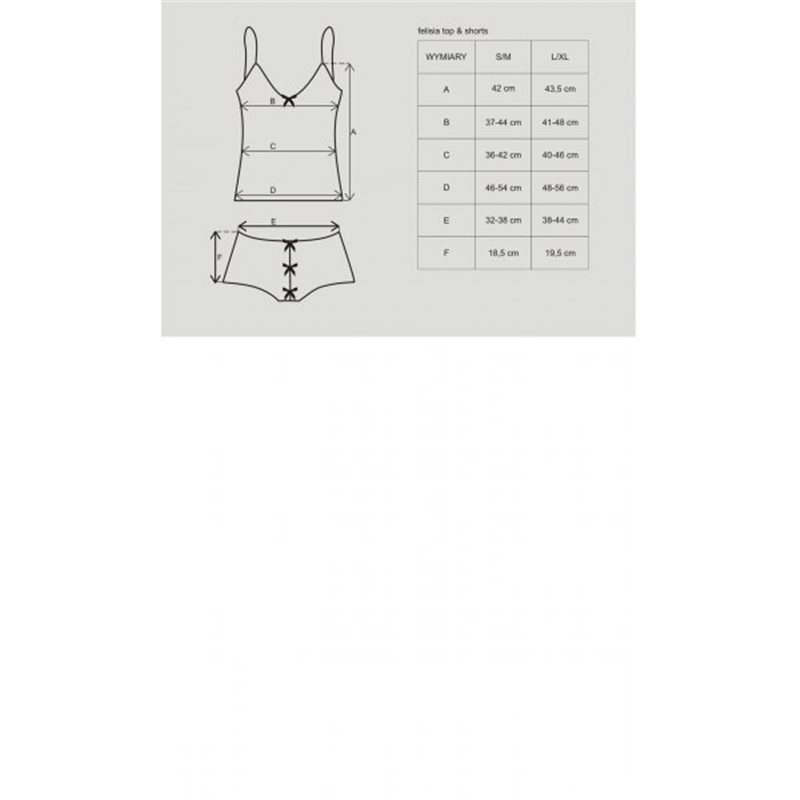 Drapieżny komplet, złożony z krótkiej koszulki i szortów, całość wykonana z miękkiej tkaniny w panterkę. Koszulka na cienkich ramiączkach, ozdobiona na miseczkach i spodzie kokieteryjną koronką. Szorty ozdobione z przodu uroczymi kokardkami i wykończone elegancką, czarną koronką.