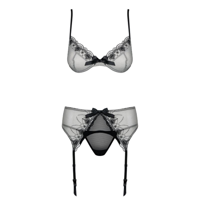 - kuszący trzyczęściowy komplet z eleganckimi zdobieniami