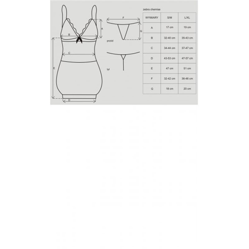 Elegancka koszulka w kolorach bieli i czerni, wykonana z miękkiego i elastycznego materiału. Staniczek odcięty czarnym, szerokim, atłasowym paskiem tkaniny. Miseczki zdobione delikatną koronką, zwieńczoną między biustem połyskującą kokardką. Haleczka ma krój bardzo modnej „bombki”, zakończonej na dole czarną wstawką. Dzikość serca w najlepszym wydaniu! W komplecie stringi.