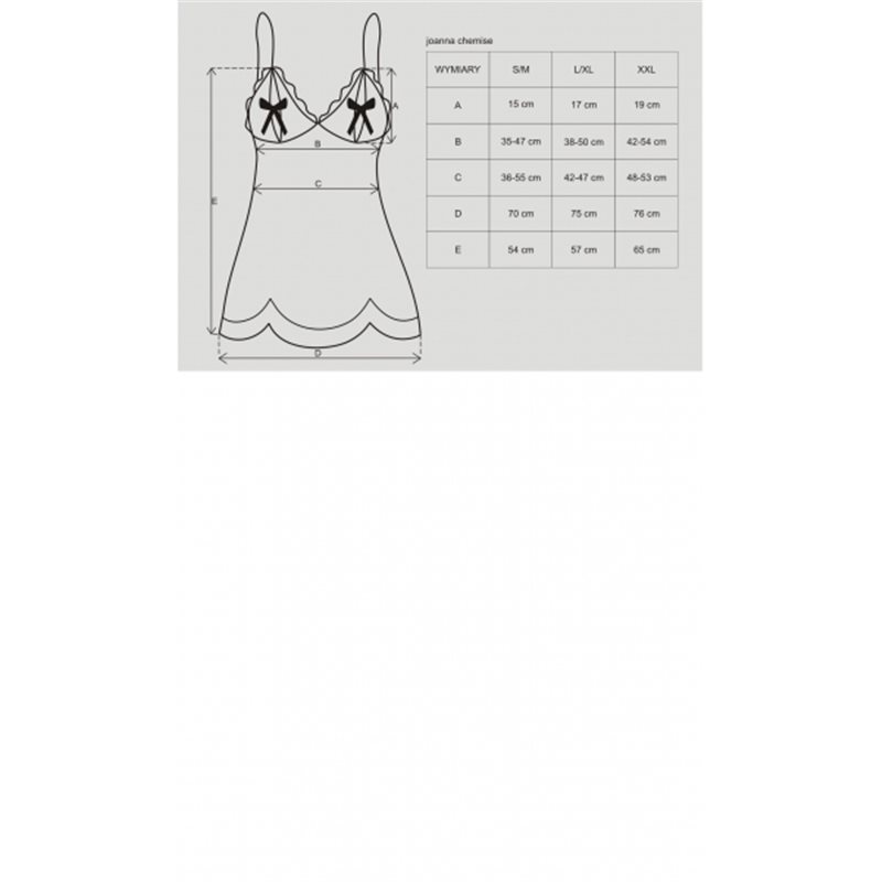 Klasyczna haleczka typu babydoll z elastycznego cienkiego materiału. Bardzo ciekawe miseczki rozcięte na środku i związane cienką atłasową wstążeczką. Uzupełnieniem są naszyte drobne falbaneczki. Całość bardzo ładnie kształtuje talię. Haleczka posiada regulowane szelki. W komplecie stringi.