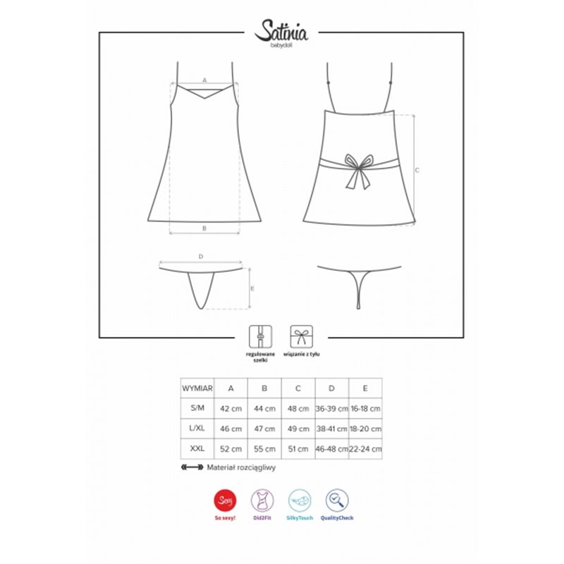 Chcesz otworzyć pudełeczko z niesamowicie zmysłową babydoll? Chcesz ją założyć i wyglądać wyjątkowo olśniewająco? Zobacz, co dla Ciebie przygotowaliśmy! Magnetycznie połyskująca, niesamowicie delikatna satyna i seksowny, kobiecy krój –wskakuj w ten kuszący zestaw i zawróć w głowie swojemu mężczyźnie!
