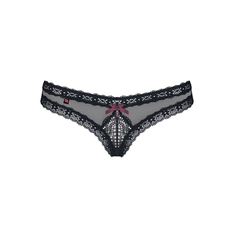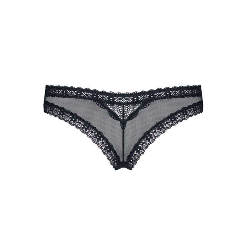 Czarna siateczka, urocza koronka i flirtujące zdobienia w odcieniach fioletu. Dzięki tym majteczkom Twoje pośladki będą wyglądać absolutnie zjawiskowo! Noś je z rozkoszą i ciesz się wyjątkowymi doznaniami – kiedy tylko będziesz miała na nie ochotę! A Twojemu mężczyźnie pozwól podziwiać ten nieziemski widok…