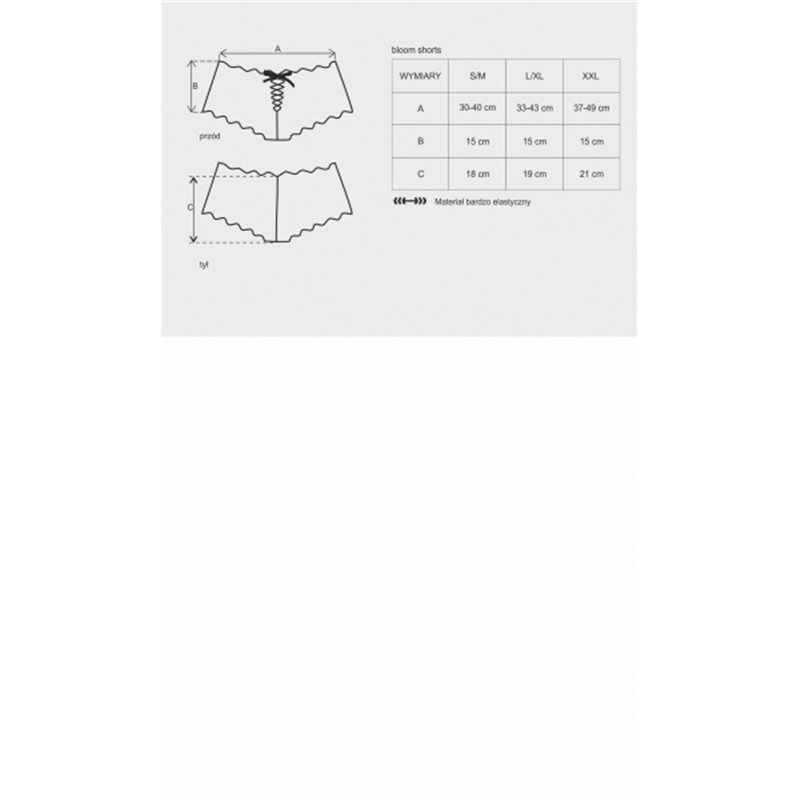 Piękne, delikatne szorty, wykonane z miękkiej, elastycznej koronki, wiązane z przodu błękitną satynową wstążeczką pobudzają wyobraźnię.