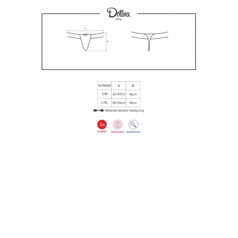 Zmysłowa siateczka, figlarne kropeczki, seksowne paseczki i urocza kokardka – idealne połączenie super detali! Stringi Dotina zostały zaprojektowane, aby dostarczyć Wam niesamowitych wrażeń. Chcesz jeszcze raz rozkochać go w swoich kuszących pośladkach? Do dzieła!
