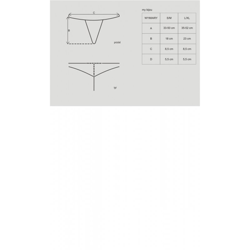 Eleganckie stringi z metalową wstawką wysadzaną błyszczącymi kamykami. Przód stringów wykonany z miękkiej koronki.