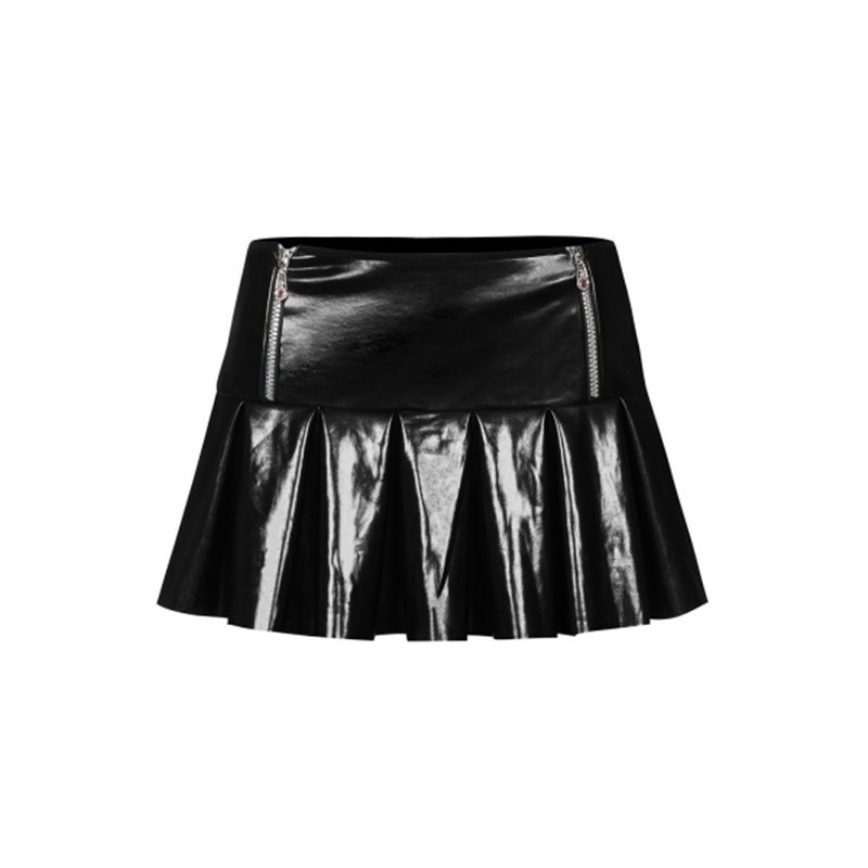 - spódniczka z zameczkami uszyta z błyszczącego materiału