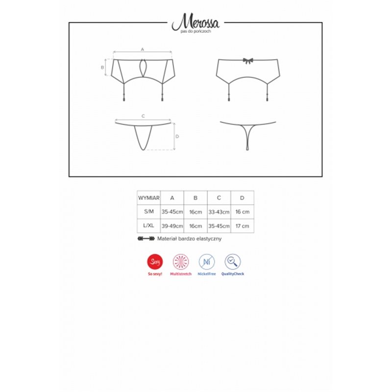 To wyjątkowe połączenie kobiecych detali będzie prawdziwym hitem wśród Twoich kolekcji. Pas do pończoch Merossa idealnie ozdobi Twój brzuszek, bioderka i pośladki. A gdy dodasz do niego swoje ulubione pończoszki otrzymasz… niebezpiecznie fantazyjny zestaw! Wygląda na to, że najprzyjemniejsze wieczory dopiero przed Wami!