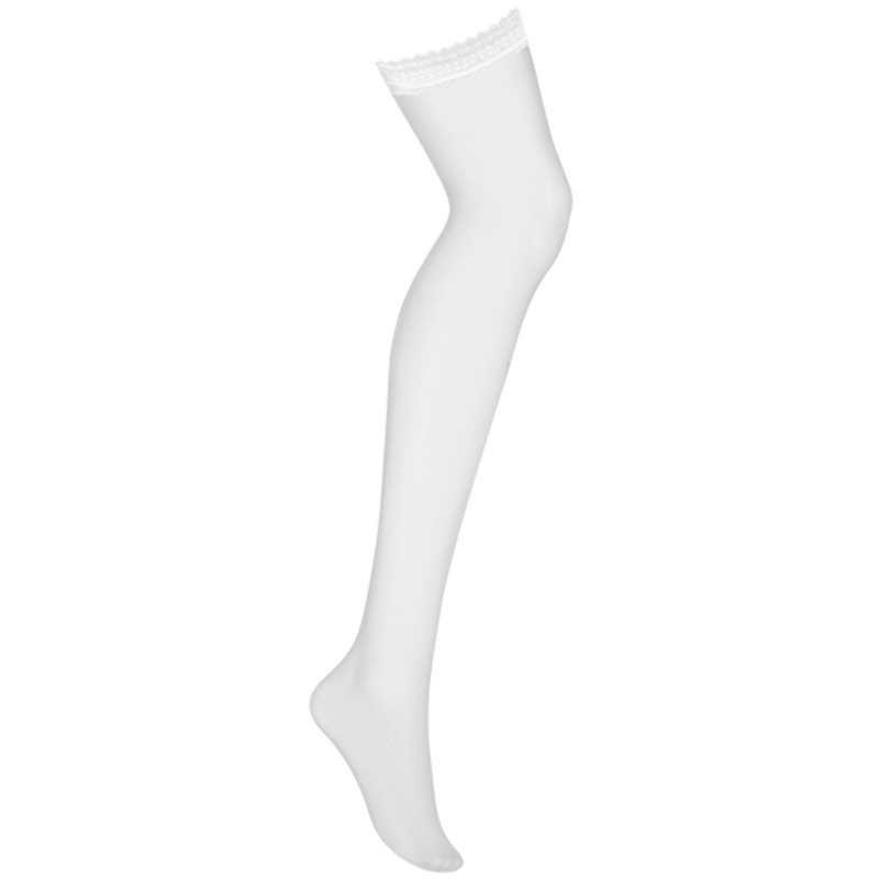 - delikatne, białe pończochy z koronkową aplikacją na udach