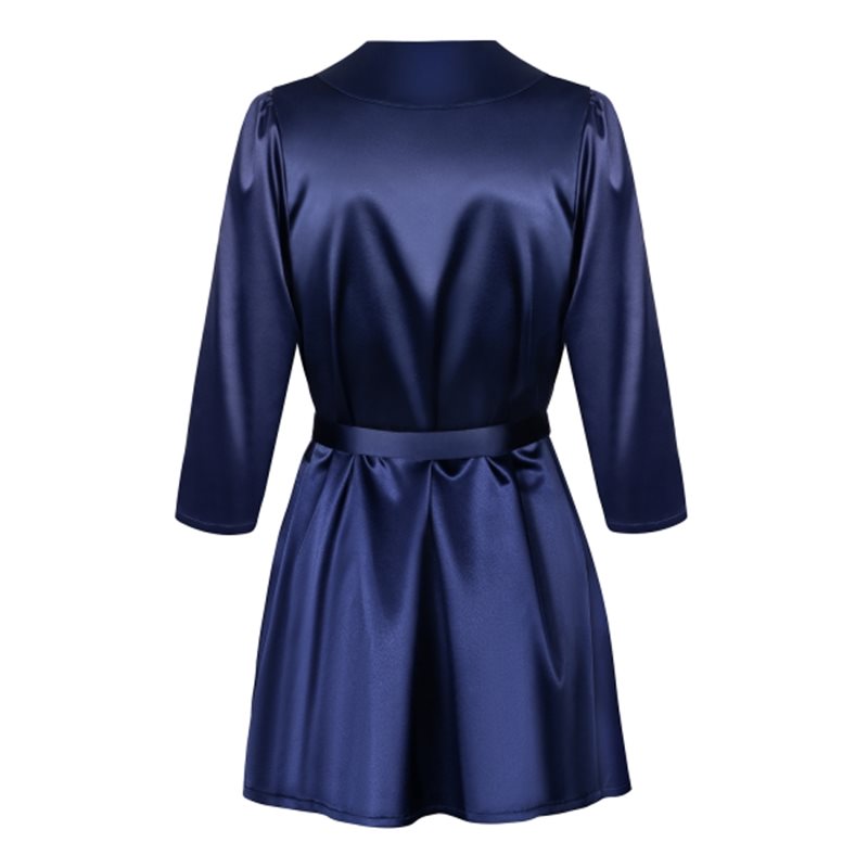 - elegancki szlafroczek uszyty z błyszczącej, granatowej satyny