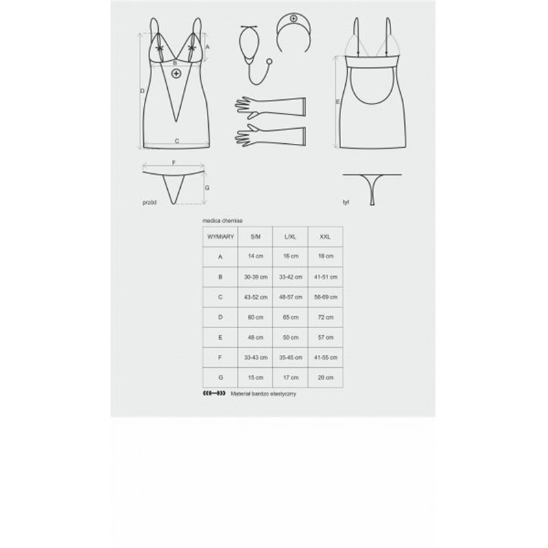 - w komplecie –stetoskop, pielęgniarski czepek na opasce, rękawiczki , stringi