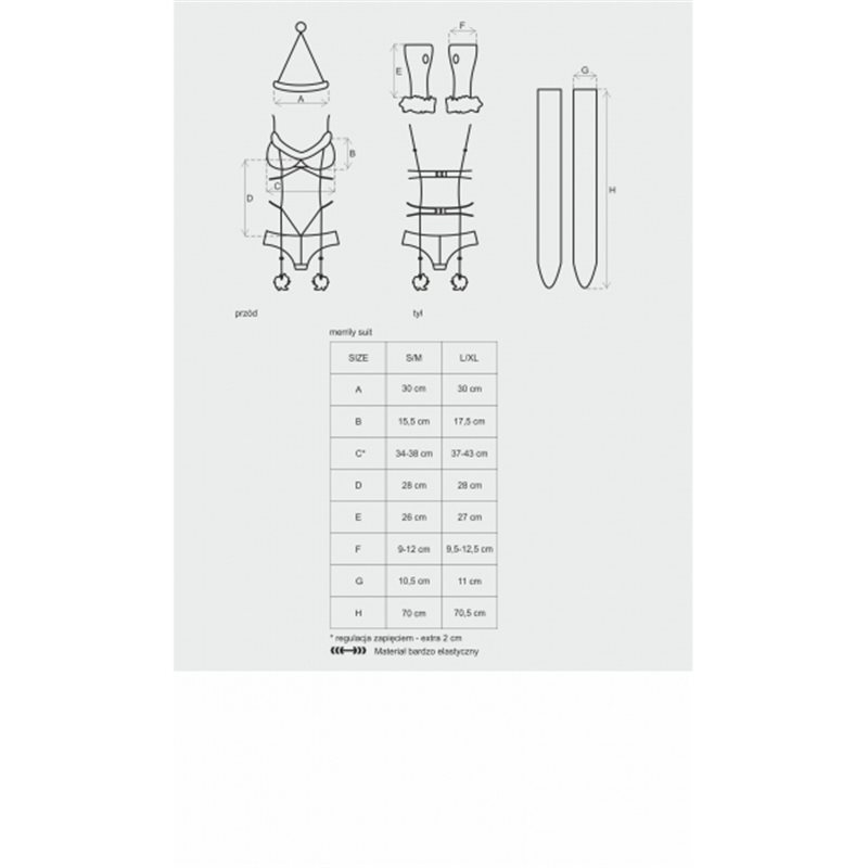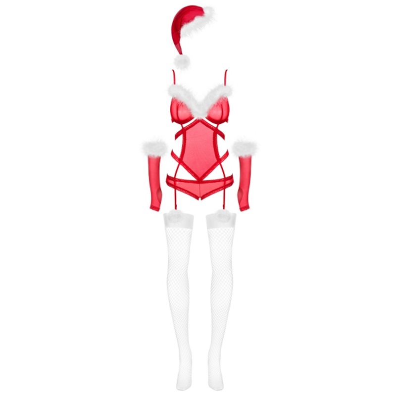 Jak bardzo niegrzeczna byłaś w tym roku? Załóż niezwykły kostium Merrily i pokaż, że zasłużyłaś na pikantne prezenty! Delikatna siateczka, uroczy puszek i kuszące pończochy to zestaw idealny na zimowy wieczór. Gorąca atmosfera gwarantowana!