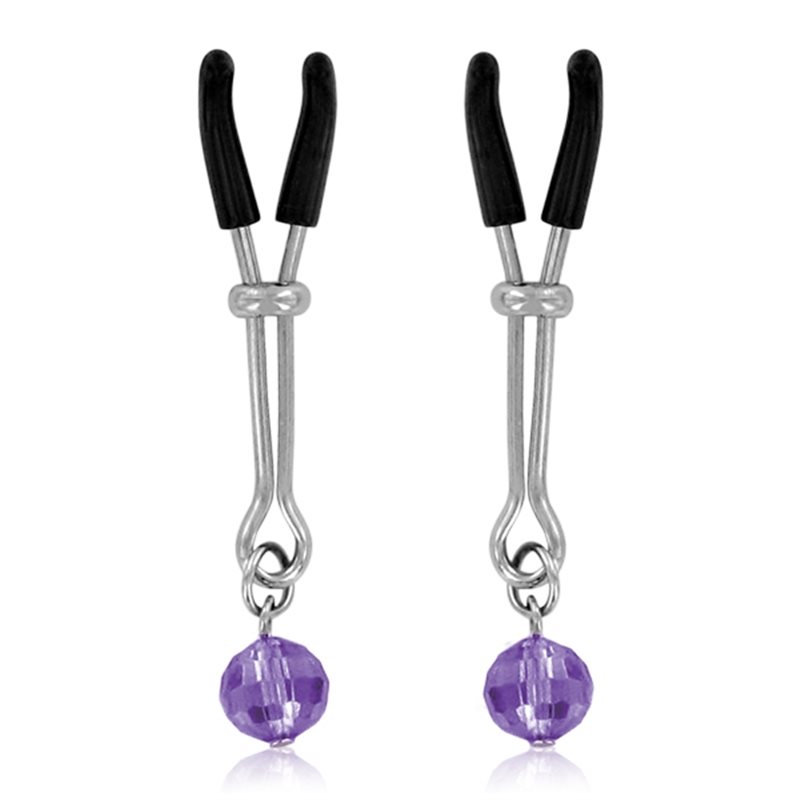Delikatny ból może być rozkoszny, szczególnie z tymi klamerkami na sutki. Są urzekająco piękne w swojej prostocie: stal nierdzewna kontrastuje z pięknym, fioletowym kamieniem. Klamerki są regulowane, bez trudu dobierzesz odpowiednią siłę zacisku.