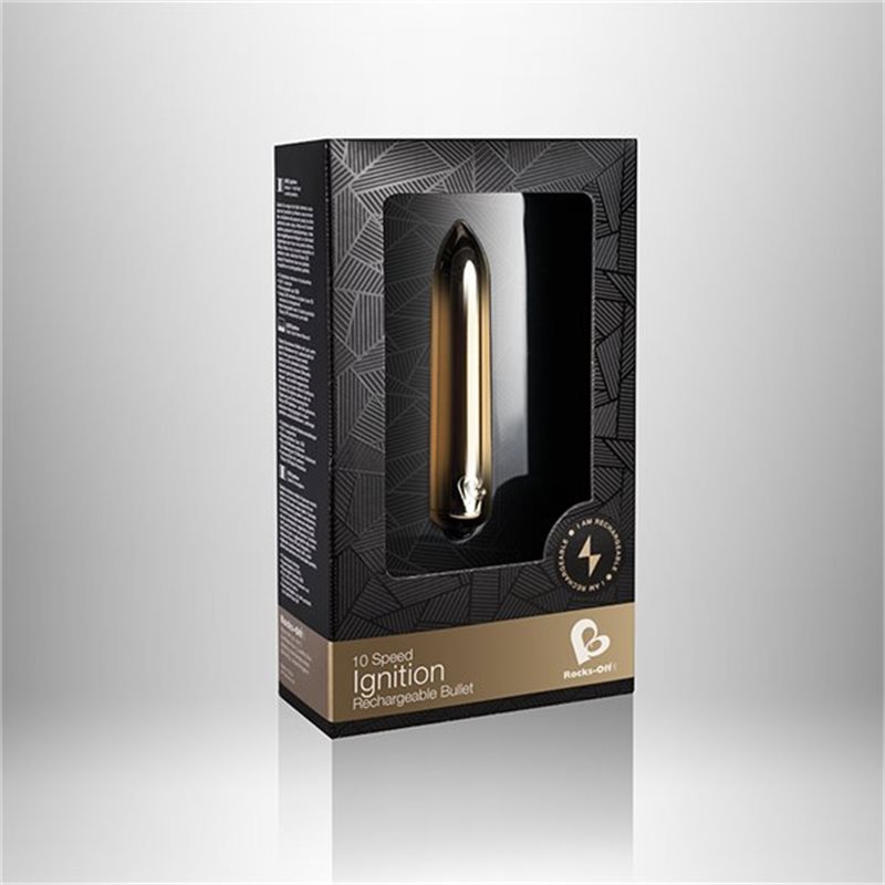 Ignition to klasyczny wibrator typu "bullet" marki Rocks-Off Ltd. Mimo swoich kieszonkowych kształtów, posiada silnik o wyjątkowo dużej mocy, zdolny do pracy w dziesięciu różnych trybach. Wibrator jest w pełni wodoodporny.