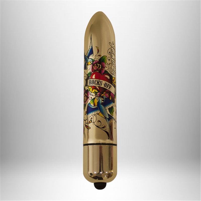 RO-160mm If You Love Me to wibrator łechtaczkowy o klasycznym kształcie bulleta / naboju, wzbogacony o grafikę powstałą według wzoru słynnego brytyjskiego tatuażysty Lal Hardy’ego.