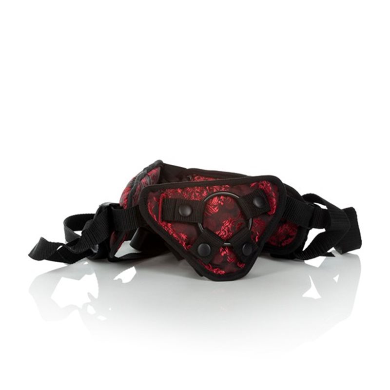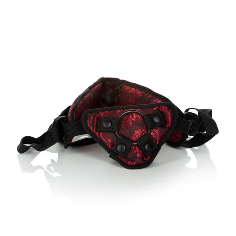 Scandal corset harness – strap-on na dildo w formie kobiecej uprzęży z uwodzicielskiej serii Scandal. Miękko wykończony element na kości łonowej zapobiega wpijaniu się w ciało twardych podstaw mocowanych zabawek. Regulacja obwodu w pasie oraz pod udami pozwala na dokładne dopasowanie rozmiaru to każdej kobiecej figury. Podwójne mocowanie podstawy dilda o różnych średnicach pozwala dostosować obwód kółka mocującego do obwodu dilda. Tył strap-ona jest ozdobiony gorsetowym sznurowaniem lekko rozszerzającym zakres regulacji.