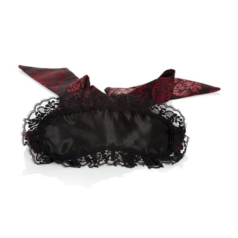 Scandal opaska na oczy – elegancka opaska na oczy z uwodzicielskiej serii Scandal. Separacja zmysłów to klucz otwierający drzwi do prawdziwej rozkoszy. Wiedziałaś, że odcięcie jednego zmysłu spowoduje wyostrzenie reszty? Po zasłonięciu oczu, Ty lub Twój partner będziecie mogli intensywniej doznawać swoich pieszczot. Część zasłaniająca oczy wykonana jest z miękkiej, kruczoczarnej satyny ozdobionej przy brzegach kwiecistą koronką. Pasy do związania opaski uszyte są z bogato zdobionej, czarno-czerwona tkanina o subtelnym połysku.