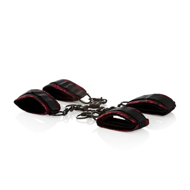 Scandal hog tie – komplet dwóch par uniwersalnych kajdanek z uwodzicielskiej serii Scandal. Kara czy nagroda? Miękkie kajdanki zapinane na rzepy ograniczą ruchliwość kończyn strony uległej. Dzięki dużej rozpiętości regulacji bransolety mogą być używane zarówno do rąk, jak i do nóg obu płci. Karabińczyki na każdej z czterech części kompletu pozwalają na przypięcie obu elementów osobno do innych akcesoriów z rodziny Scandal oraz dodatkowo umożliwiają zebranie rąk i nóg razem za pomocą elementu dołączonego do zestawu. Zakładając bransolety na nogi możesz przymocować je także do rozpórki.