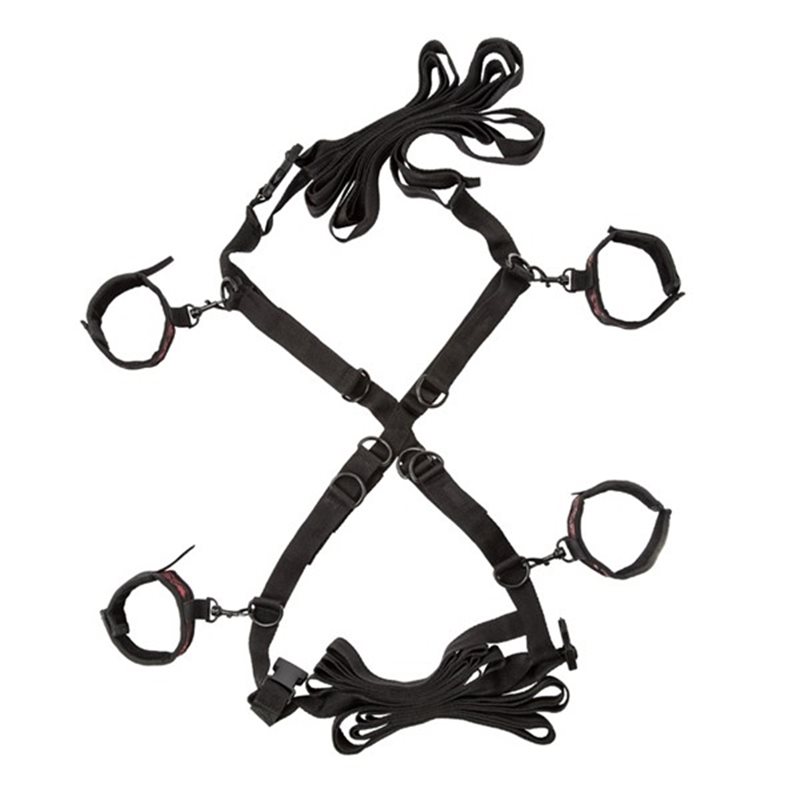 Scandal over the bed cross – system kajdanek mocowanych do materaca z możliwością przypięcia do łóżka z uwodzicielskiej serii Scandal. Kara czy nagroda? Kajdanki zapinane na rzepy ograniczą ruchliwość strony uległej. Krzyżujące się pod ciałem pasy umożliwiające unieruchomienie w stosunku do łóżka pozwolą na pełną kontrolę pozycji. Dodatkowo każdy koniec pasa posiada dwie wysokości przypięcia rąk i nóg do wyboru. Wszystkie cztery bransolety o szerokim zakresie regulacji zakończone są karabińczykami, co pozwala używać ich także z innymi akcesoriami z serii Scandal. Przykładowo założone na nogi umożliwiają założenie rozpórki.