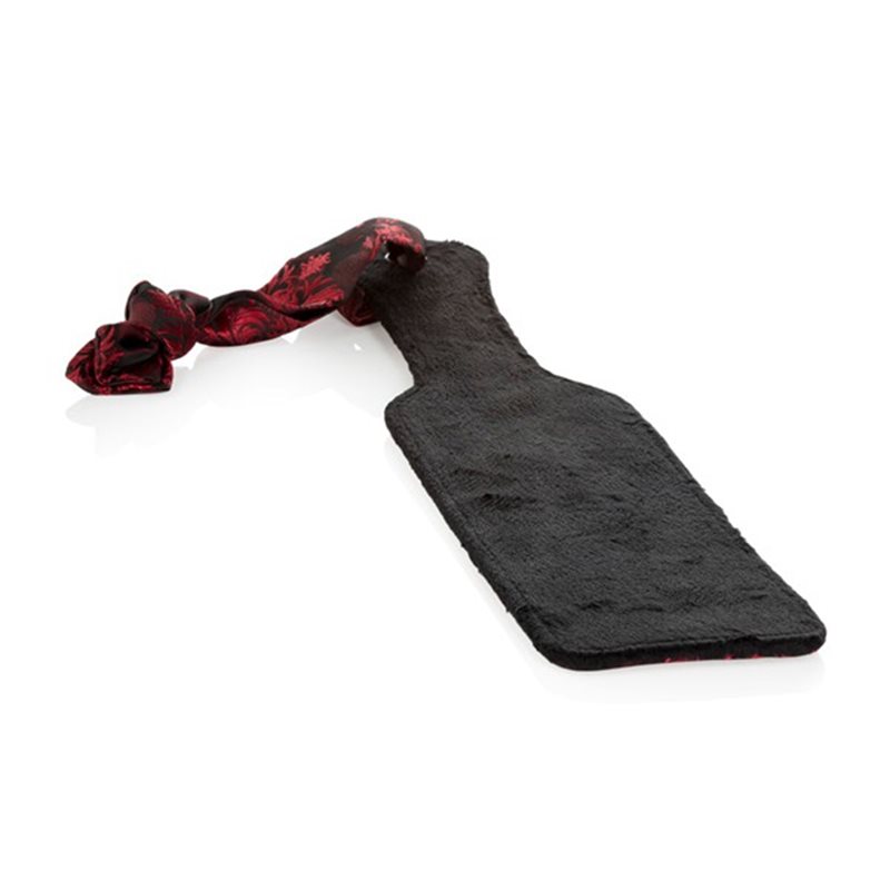 Scandal paddle – elegancka packa do klapsów z uwodzicielskiej serii Scandal. Kara czy nagroda? Przyjemność czy ból? Dwie różnorodne strony packi pozwolą Ci na pełną kontrolę. Jedna to bogato zdobiona, czarno-czerwona tkanina o subtelnym połysku, a druga to przyjemny w dotyku plusz lekko amortyzujący uderzenia.