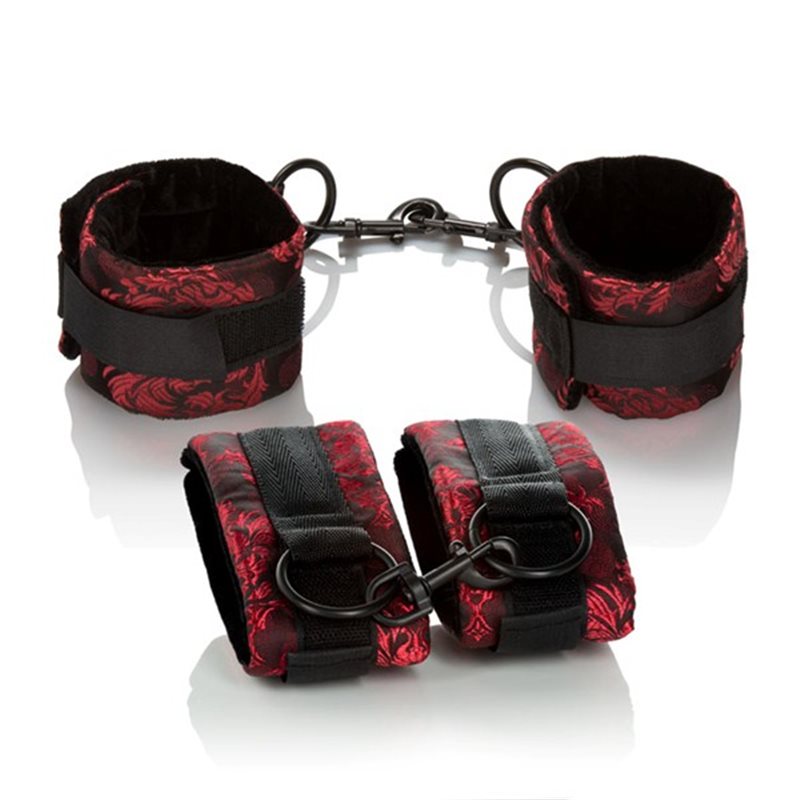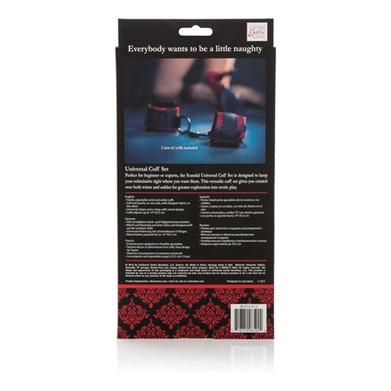 Scandal universal cuffs – komplet dwóch par uniwersalnych kajdanek z uwodzicielskiej serii Scandal. Kara czy nagroda? Miękkie kajdanki zapinane na rzepy ograniczą ruchliwość kończyn strony uległej. Dzięki dużej rozpiętości regulacji bransolety mogą być używane zarówno do rąk, jak i do nóg obu płci. Karabińczyki na każdej z czterech części kompletu pozwalają na przypięcie obu elementów osobno do innych akcesoriów z rodziny Scandal. Zakładając bransolety na nogi możesz przymocować je do rozpórki.