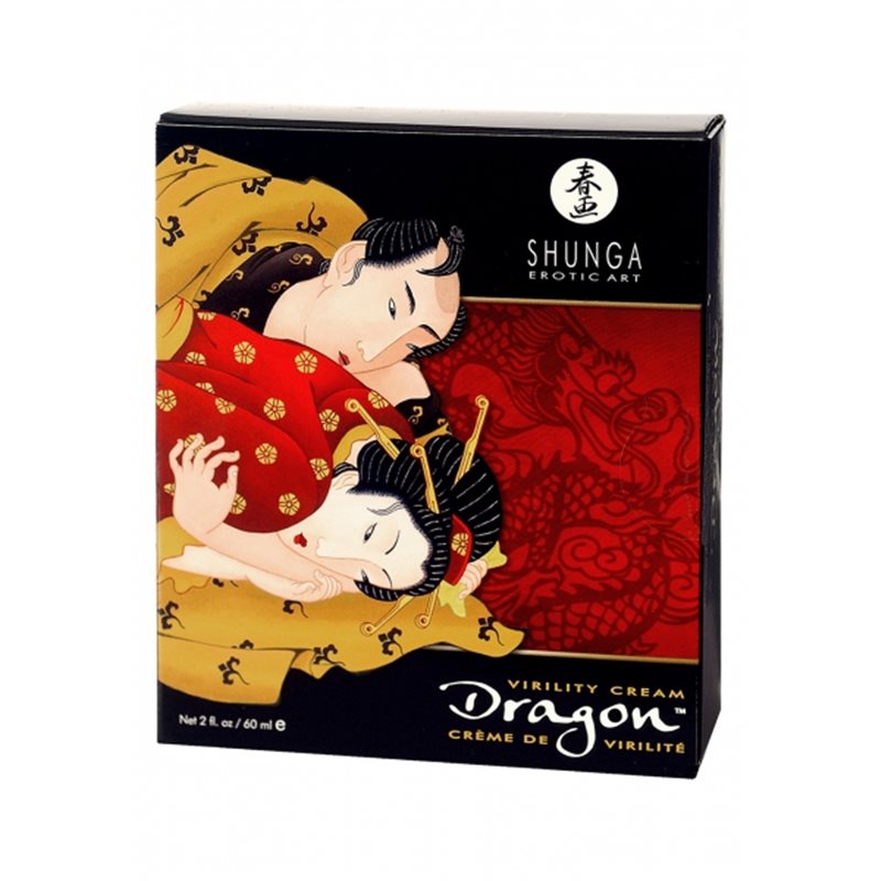 Dragon Virility Cream marki Shunga to specjalistyczny środek zwiększający wytrzymałość seksualną dla mężczyzn. Produkt nie zawiera w swoim składzie parabenów, cukru, glutenu oraz sztucznych aromatów. Odpowiedni dla wegan. Nadaje się do użytku z zabawkami oraz produktami wykonanymi z lateksu. Łatwy do zmycia przy użyciu ciepłej wody.