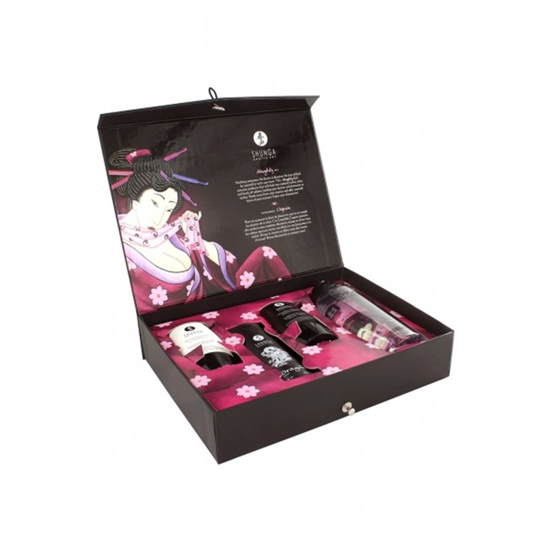 Zestaw marki Shunga, w skład którego wchodzi: krem do miejsc intymnych dla kobiet Secret Garden, lubrykant na bazie wody Toko Aqua, krem do punktu G Rain of Love oraz krem zwiększający wytrzymałośc seksualną dla mężczyzn, Dragon Virility.