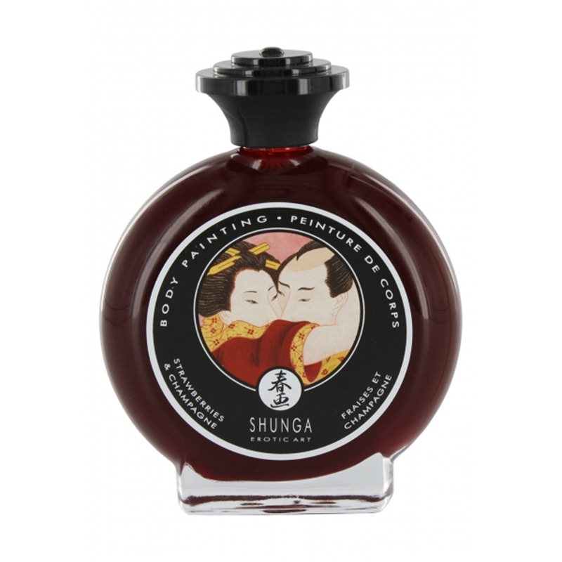 Jadalna farbka do ciała marki Shunga o smaku musującego wina truskawkowego. Nie zawiera w swoim składzie parabenów, glutenu i sztucznych aromatów. Produkt odpowiedni dla wegan.