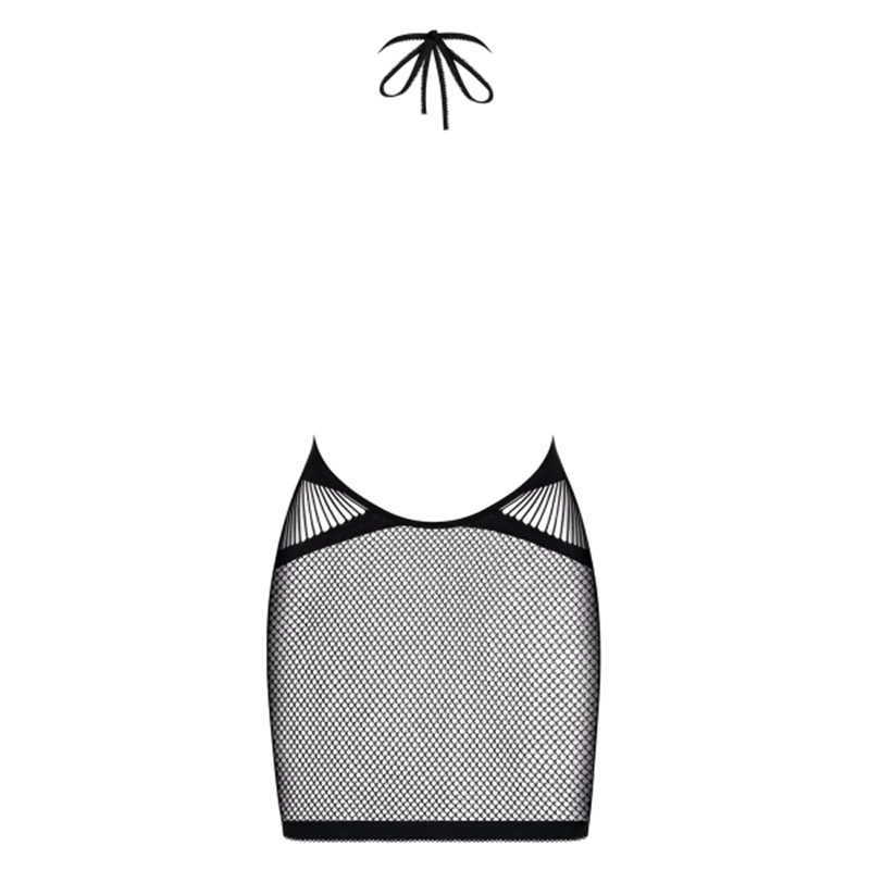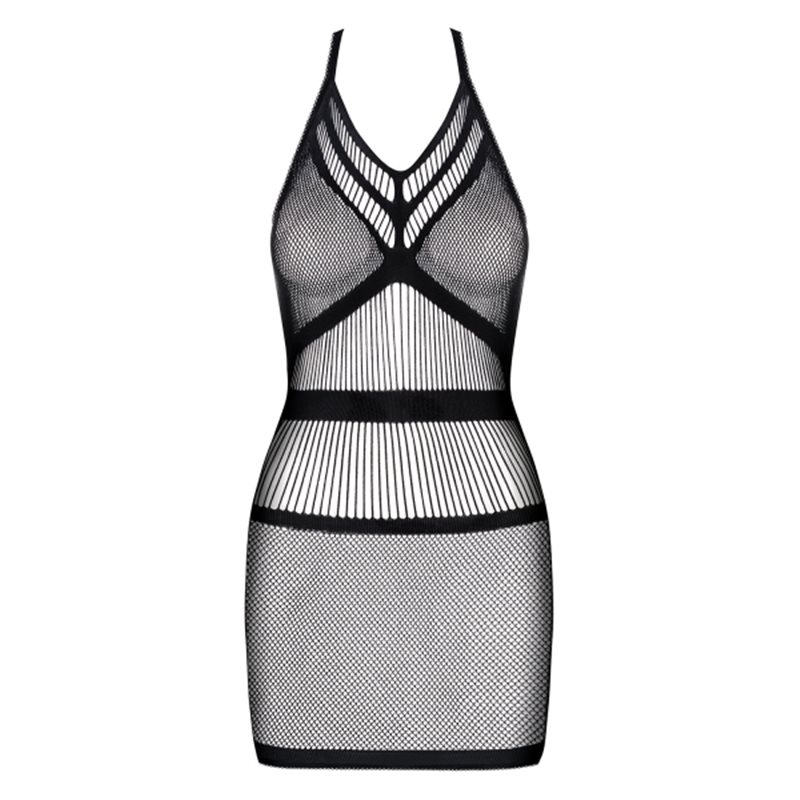 Oto ona – seksowna dzianina stworzona dla Twojej przyjemności. Sukienka, która oplecie Twoje ciało delikatną siateczką. Spójrz na te rozkoszne paseczki i drobne oczka w zmysłowej, głębokiej czerni. To właśnie one pomogą Ci zaskoczyć Twojego ukochanego fenomenalnym wyglądem. Nie czekaj – działaj!